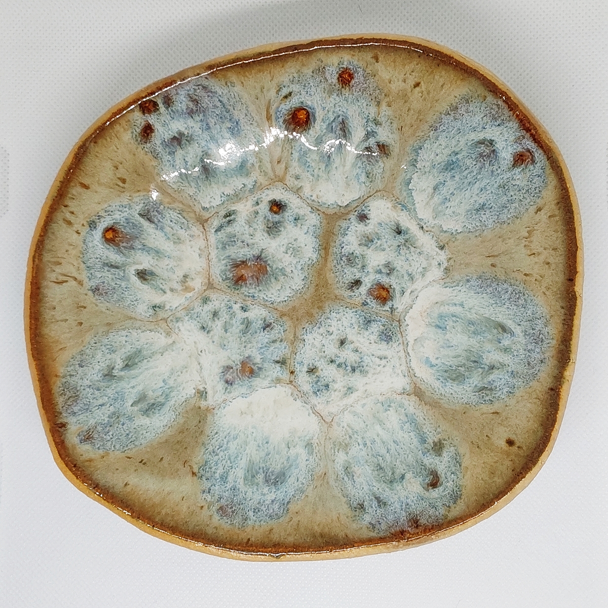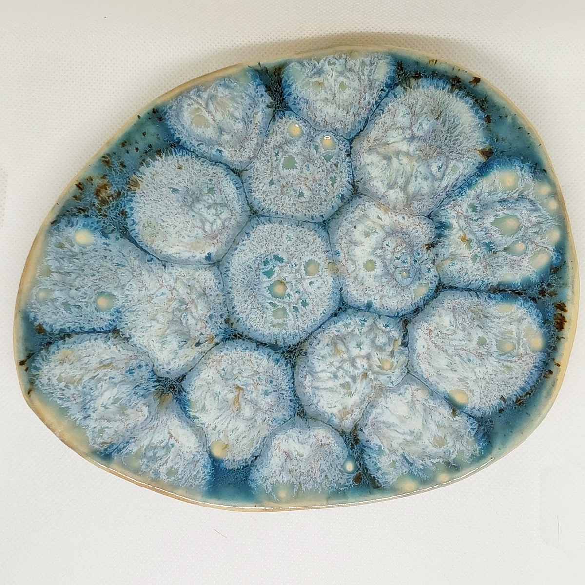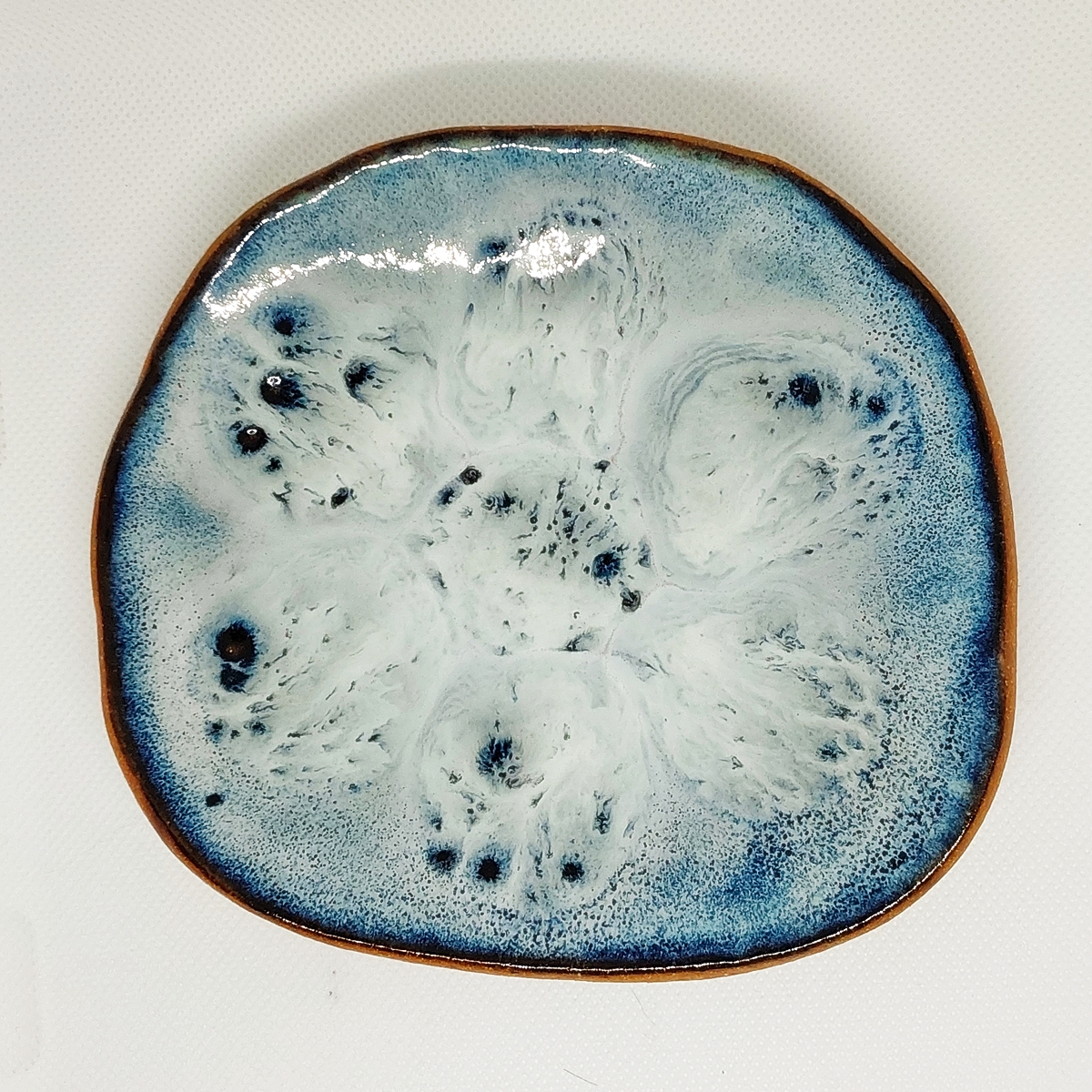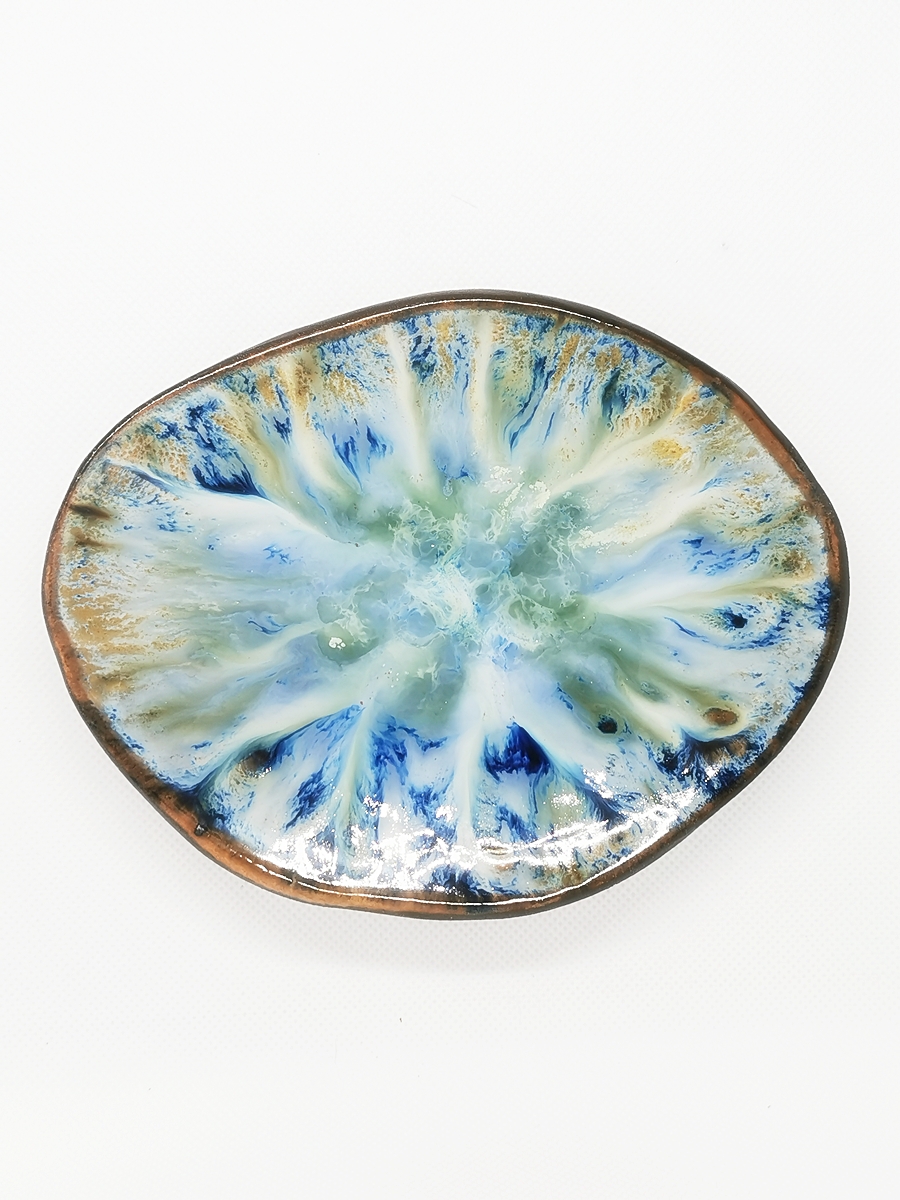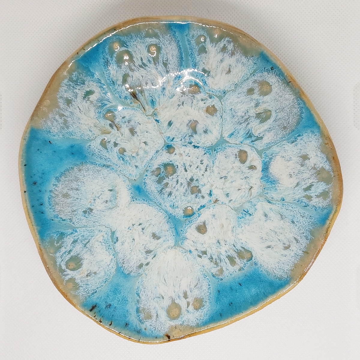 The “Frozen Pond” collection uses a special technique that melts and fuses glazes, creating unique patterns and beautiful colour transitions. Each handmade piece captures the delicate textures of flowing and frozen water, making every creation truly one of a kind.