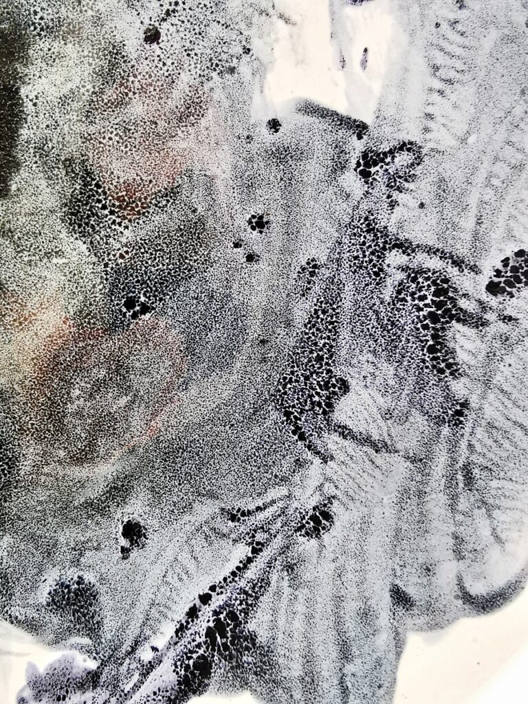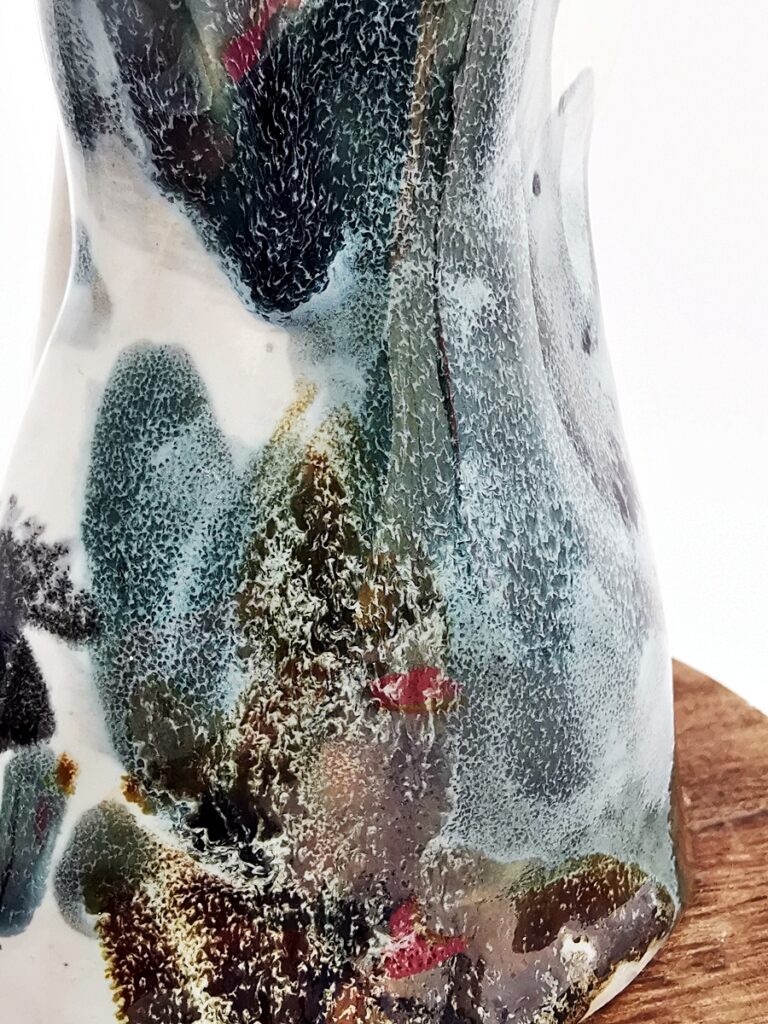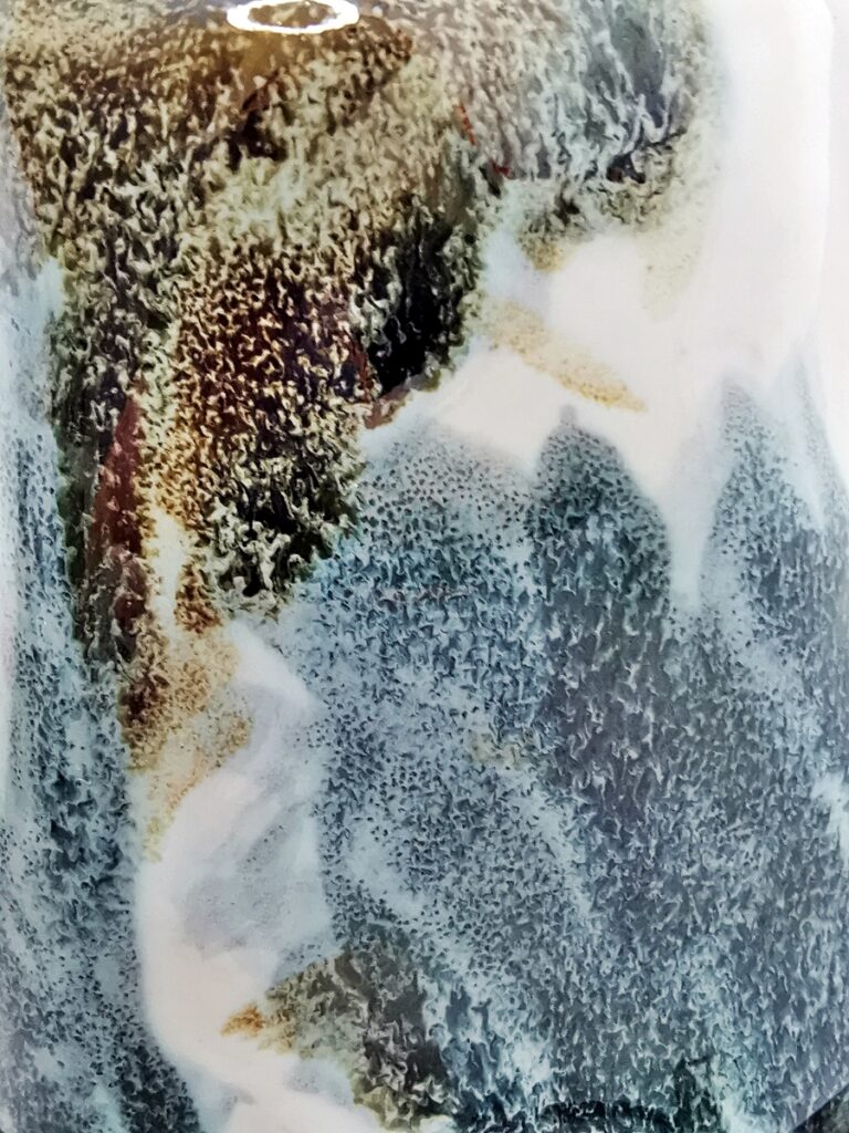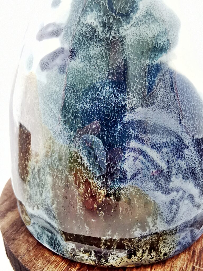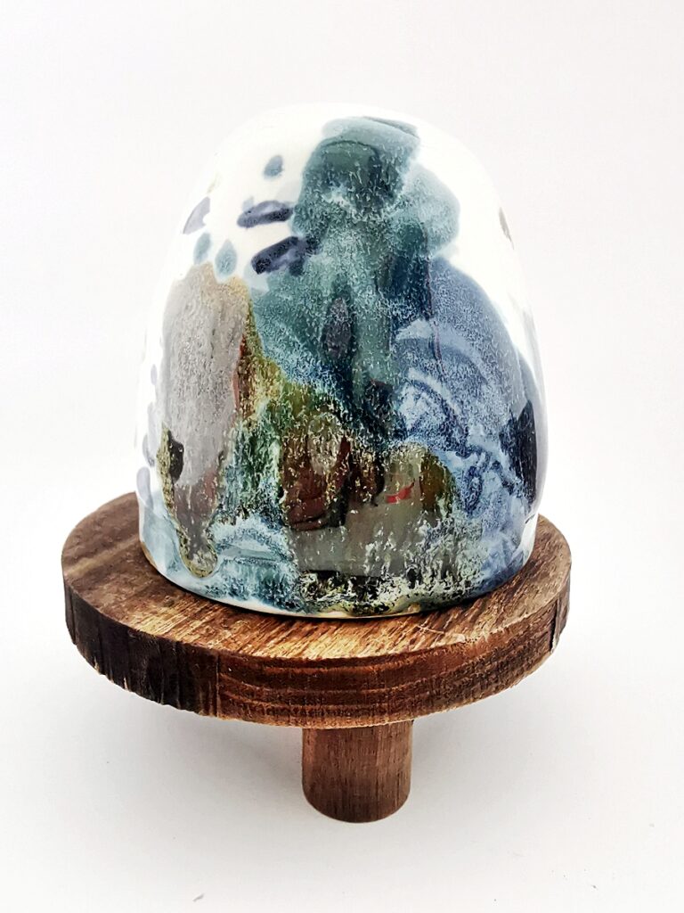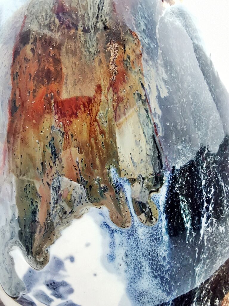 The “Oil” collection uses a special technique that captures the effect of oil floating on a liquid surface. The colours melt into each other, reminding me of Svalbard — snow, ice, water, and earth — creating shimmering patterns and delicate shifts that make every piece special.