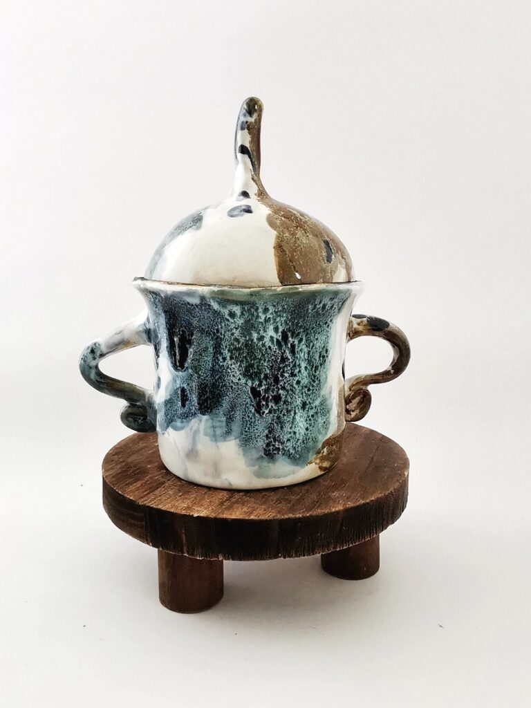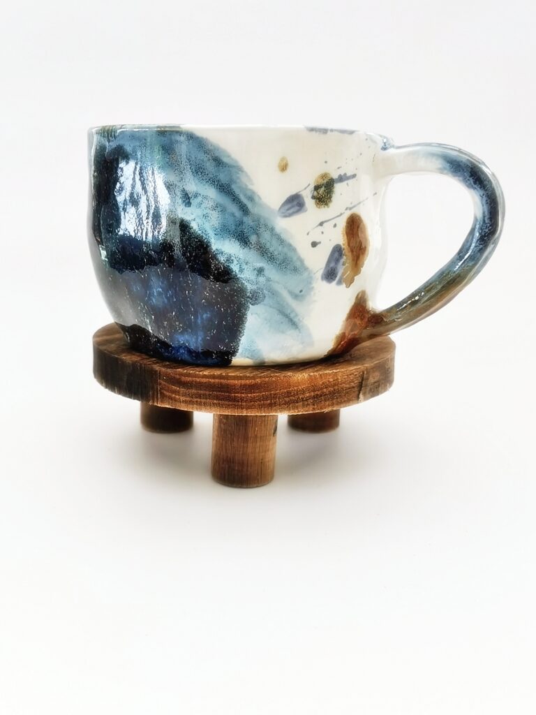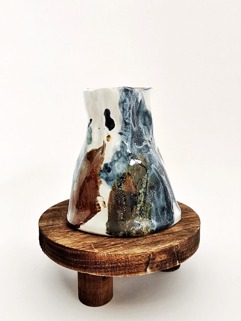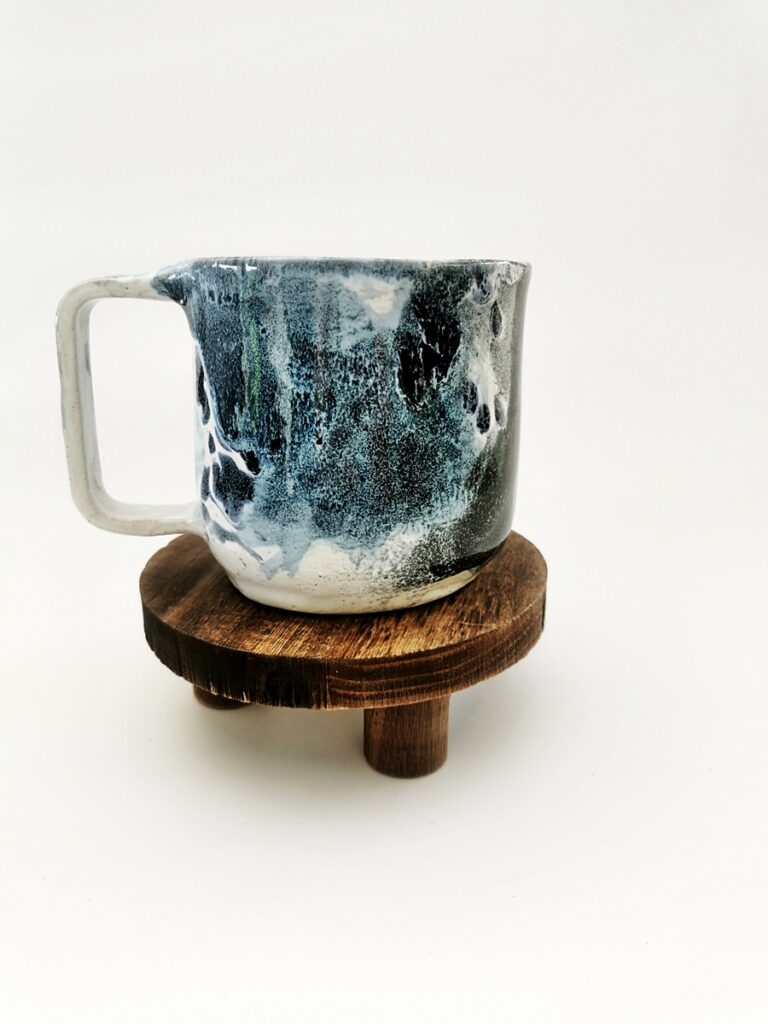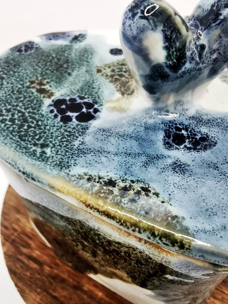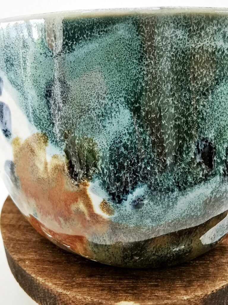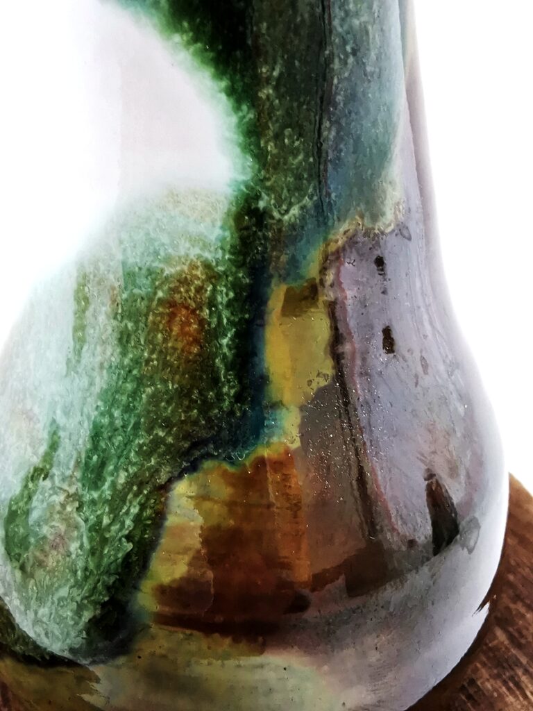 The “Oil” collection uses a special technique that captures the effect of oil floating on a liquid surface. The colours melt into each other, reminding me of Svalbard — snow, ice, water, and earth — creating shimmering patterns and delicate shifts that make every piece special.