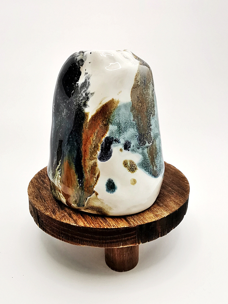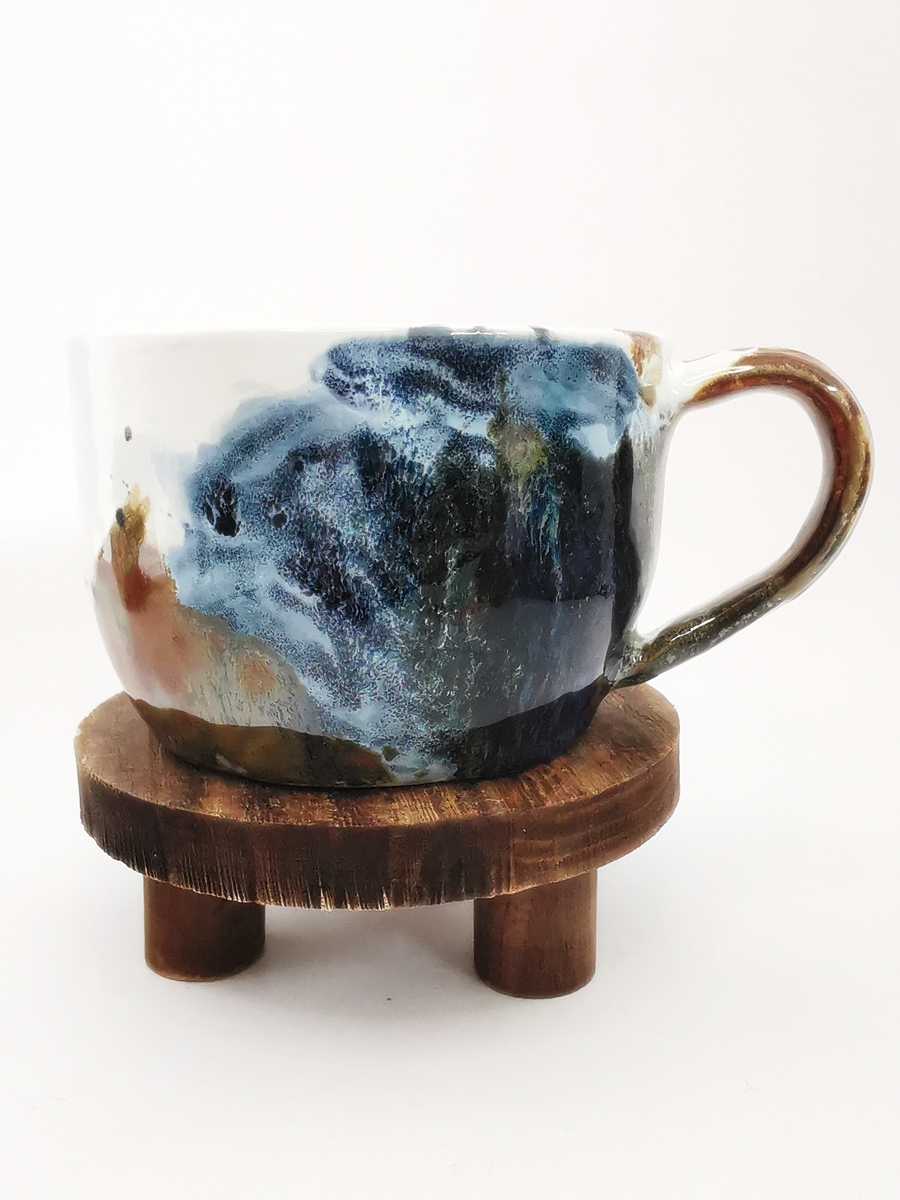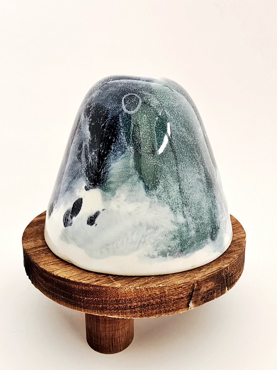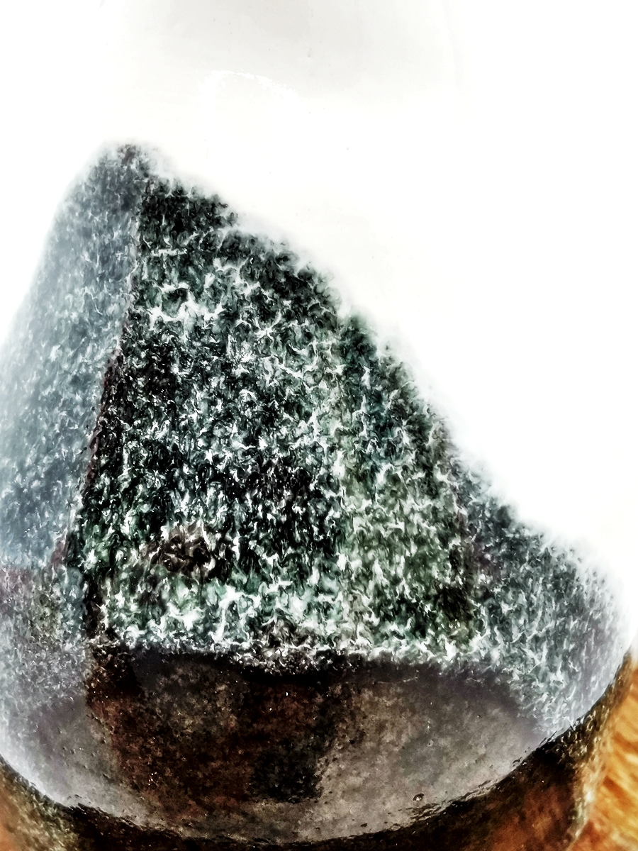 The “Oil” collection uses a special technique that captures the effect of oil floating on a liquid surface. The colours melt into each other, reminding me of Svalbard — snow, ice, water, and earth — creating shimmering patterns and delicate shifts that make every piece special.